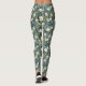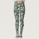 Teal Green Chinoiserie Tropical White Gold Floral Leggings