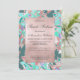 Teal green coral rose gold floral Sweet 16 Invitation