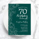 Green Floral 70th Birthday Party Invitation. Minimalist modern design featuring botanical outline drawings accents and typography script font. Simple trendy invite card perfect for a stylish female bday celebration. Can be customised to any age. Printed Zazzle invitations or instant download digital printable template.