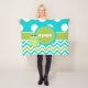 Show off your style in a fun way with this teal and green frog chevron print monogram blanket.