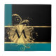 Personalise this traditional vintage green Scottish tartan plaid stripe pattern and black background and gold vintage baroque monogrammed swirl design by adding your monogram to the template to make a unique modern custom gift. PLEASE NOTE the gold is not metallic.
