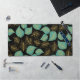 This eye-catching desk mat features a captivating pattern of teal green and gold broad leaves on a striking black background. Its intricate design of broad leaves in teal and gold provides a dynamic contrast that is sure to enliven any workspace. This desk mat is both decorative and practical: its vibrant design will bring a touch of beauty to any desk, while its durable construction makes sure it will last you through many years of use. This stunning desk mat is the perfect way to add some personality to your workplace and make it stand out.