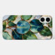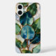 Elegant, modern, and nature-inspired, this phone case features beautiful teal and green botanical leaves in a stained-glass-inspired style with subtle gold detailing.