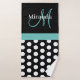 Teal Green Monogram Black White Polka Dot Bath Towel Set