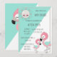 Teal/Green Pink Flamingo Baby Girl Shower Invite