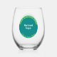 Teal green colour and round shape business brand on stemless wine glass. Customisable wine glass that you can include in your promotional products, giveaway items or gifts to your customers or clients to advertise your business or to promote your brand name. Customisable drinkware that you can use to build brand name awareness. Customise it by uploading your business logo, typing your business name and the location of your business. Please check the appearance on front and back sides after uploading logo and typing texts. If the appearance is pleasing to you, you can place your order now. If you need to resize and move the logo and texts, please change in the design tool. You can also change the font colour, colour of the round shape background and font style in the design tool.