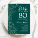 Teal Green Surprise 80th Birthday Invitation. Minimalist modern feminine design features botanical accents and typography script font. Simple floral invite card perfect for a stylish female surprise bday celebration.