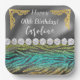 Teal Green Zebra Print & Gold Silver Birthday Paper Plate