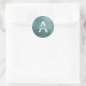 Customise this circular return address sticker in teal green with your monogram,  last name and address. Perfect for wedding envelopes or other special and stylish occasions, favour gift bags and other giveaways.