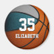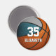 This team colours basketball themed magnet for girls or boys features the realistic image of a basketball that has two recolored panels--one teal and one grey - easily customise with player name & jersey number - by katz_d_zynes