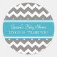 Baby shower thank you favour tag sticker in elegant and fun bright turquoise blue and grey chevron zigzags pattern. Customisable with your own text, contact us for a colour change. The perfect way to decorate your baby shower favours and thank your guests for being a part of your special day.