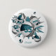 This fun basketball button features an "explosion" of varied size teal, grey and white basketballs and grey, teal and white star shapes - a pattern of tiny white polka dots covers the teal star - customise with the athlete's name & jersey number - by katz_d_zynes