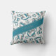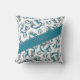 This cool volleyball team colours throw pillow for girls features a pattern of varied size stylised teal, grey and white volleyballs turned every which way overlying a volleyball net detail graphic - the volleyballs' teal & grey panels are blended with an artsy, girly floral pattern - personalise her name in a sophisticated handwritten font on a bold, angled, full width teal colour strip - background and name strip colours are customisable - by katz_d_zynes