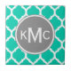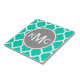 Modern elegant girly bright teal and white Moroccan lattice pattern, inspired by trendy quatrefoil architecture design. Cute modern geometric style graphic that would make a chic preppy gift for girls. Features a grey and white circle nameplate for your custom three monogram initials letters. The trio of letters represent the first name initial, last name initial and middle name initial.