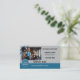 Business card featuring your photo and logo on a teal blue with grey design. On the back is a QR code template as well as another photo. You can replace or delete the social media icons according to your needs. Perfect for a fitness expert or personal trainer.