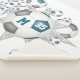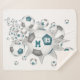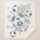 This cool girl's soccer themed Sherpa fleece blanket features an "explosion" of soccer balls with teal, grey and white panels in varying sizes and a grey star shape with white polka dots - customise with player's monogram and jersey number - katz_d_zynes
