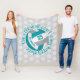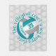 This cute and girly volleyball themed fleece blanket features a teal, grey and white volleyball encircled with the text, "The volleyball court is my happy place" in teal in a fun and casual, handwritten style font - the background is customisable light grey with a "polka dots" pattern of smaller white volleyballs - her name and jersey number are customisable - by katz_d_zynes