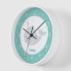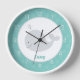 This clock features our cute grey whale with a teal border and white numbers. Add a name, if desired. © Art by Jess