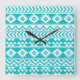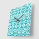 Teal Grunge Aztec Tribal Pattern Square Wall Clock