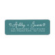 Teal heart script couple return address label featuring playful hand-drawn white hearts and a charming, flowing script font for couple names. Set on a rich teal background, this long rectangular label adds a warm, personal touch to wedding mail, save the dates, thank you cards, or everyday envelopes. The modern handwritten script pairs beautifully with clean, easy-to-read address text, making this label both stylish and practical. Fully customizable with your names and return address.