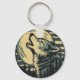 Teal Howling Wolf Moon Art Key Ring