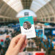 Simple, stylish corporate ID badge which can easily be personalised with your employee's ID photo, name, position, company logo, business details and QR code or barcode. The colourful stylish design features modern minimalist typograhy and a colour block banner in teal blue green to stand out from the crowd. The image shown is for illustration purposes only to be replaced with your own photo. The placeholder image is of a trendy young woman with wavy brown hair and glasses.