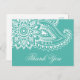 This teal Indian paisley thank you postcard is perfect for a modern wedding. The mehndi design features a lovely floral henna mandala and paisley motif on a turquoise background. Personalise the back of the postcard with your names, your return address, and a thank you message. Alternatively, leave the thank you message template section blank to hand write a thoughtful personalised note on each card after they arrive. These cards can be used for a wedding, bridal shower, or any special event.