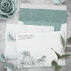 Searching for enchanting stationery ideas to complete your princess themed celebration? Turn ordinary envelopes into fairy tale keepsakes with this easy-to-edit DIY template. Personalize the 5x7 envelope design with your own return address in minutes. This beautiful design showcases original fairytale art by Raphaela Wilson, featuring a vintage crown horse drawn carriage, a nearly midnight clock, and soft watercolor textures in shades of teal, light sage, and seafoam green. The floral envelope liner is decorated with a lush pattern of roses creating a dreamy royal garden feel. Accents of faux silver confetti and whimsical butterflies add a hint of sparkle, perfect for a teal and sage quinceanera, storybook wedding, Cinderella sweet 16, or elegant bridal or baby shower. The back flap continues the theme with matching florals, graceful greenery, and shimmering confetti touches. Choose from elegant calligraphy script or modern fonts to complete your look — and even include decorative wax seals or stickers for a charming finishing touch. Category: cute butterfly princess wedding envelopes; horse drawn carriage pre addressed wedding return address envelopes; and light teal floral 5x7 envelopes (rsvp card size available). Silver and seafoam green quinceañera theme colors: blue evergreen teal, light teal, pale sage, dark ocean green, light sage green, light seafoam, dusty aqua, mint, light grey, dark gray, faux metallic silver, black and white.