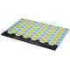 This decorative glass cutting board features a teal and lime green polka dot pattern with a row of black polka dots and a black banner across the bottom. Customisable text allows you to add a name.