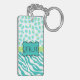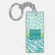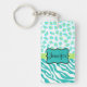 Teal Lime Green & White Zebra & Cheetah Skin Key Ring