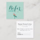 Elegant teal and hand painted pink lotus flower referral card, designed with holistic professionals in mind. Featuring a modern handwritten script and serene lotus flower, this card is perfect for estheticians, Reiki healers, massage therapists, and energy workers. Encourage client referrals in style with this calming and professional design.