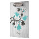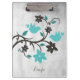 Give an elegant office gift with a Teal Lovebirds Personalised Clipboard. Clipboard design features a pair of lovebirds adorned with a floral vine and area you can personalise with your name. Additional gifts available with this design as well as a variety of colours.