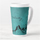 Enjoy your morning latte with a Teal Lovebirds Personalised Latte Mug. Mug design features a teal grunge background adorned with a leafy vine and a pair of resting birds. Personalise with your own name or create a unique gift for friends or family.  Additional items available with this design as well. Please contact me directly for assistance with personalisation.