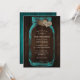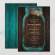 Teal Mason Jar Wood Monogram Burlap Hearts Wedding Invitation