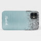 Teal Metallic Silver Glitter Girly Monogram Name Case-Mate iPhone Case