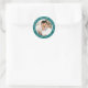 Teal Modern Getting Hitched Wedding Photo Classic Round Sticker