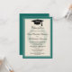 Turquoise teal blue-green background with mortarboard graduation cap, with monogrammed three letter initials. Classic grad invite for male or female college graduates, for trade school, graduate school, speciality major, high school or any level. This inexpensive, cheap value priced school colours graduation announcement or graduation ceremony invitation is perfect for inviting loved ones to an open house, reception, formal lor casual graduation party. Classic design features traditional laurel wreath emblem, personalised monogram, along with elegant script writing and old English style monogram. Extremely easy to personalise with your student's information. Formal and traditional classic style graduation invite for men or women, girls or boys of any age.
