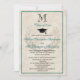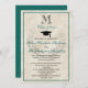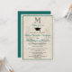 Teal turquoise blue-green with marble cream pattern background design. Classic monogrammed single letter initial (your choice of first name or last name) is stately and handsome for the male or female college, trade school, or any level graduate. This inexpensive, cheap value priced modern classic style graduation announcement or graduation ceremony invitation is perfect for university or graduate school graduates, for an open house, casual lunch reception or formal party. Celebrate the monumental accomplishment of a bachelor's degree, associates degree, masters or doctorate degree. Classic design features subtle laurel wreath emblem, personalised monogram, along with elegant script writing. Very Easy to personalise with your information. Choose your colour by choosing "customise further" and changing text and background colours on front and back. Formal and traditional classicsl style graduation invite for men or women, girls or boys of any age.
