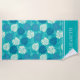 Teal Navy and White Coastal Monstera Custom Name Beach Towel