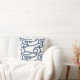 This throw pillow features an illustrated, flowing repeating abstract line pattern. The colours are shades of blue. Perfect for beachy, coastal or nautical theme decor.