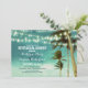teal ombre beach rehearsal dinner string lights invitation