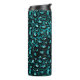 Teal Ombre & Black Glam Glitter Leopard Spots Thermal Tumbler