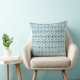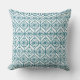 Teal on White Ethnic Pattern, Flowers, Chevrons Cushion