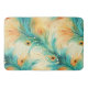 Teal Orange Cream Peacock Feathers Bath Mat