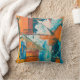 Add a bold, artistic statement to your living space with this striking abstract throw pillow. This design features a high-resolution print of an original abstract expressionist painting, capturing all the rich, three-dimensional visual texture of heavy impasto acrylics. A dynamic interplay of warm and cool tones, the artwork blends energetic splashes of tangerine orange and crisp white with deep, moody navy blues and vivid turquoise.