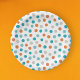 Are you looking for the perfect paper plate to bring some fun to your kids party? Look no further than our Teal Orange Polka Dots Paper plates! Perfect for any gender, these beautiful fun confetti paper plates will add a playful charm to any celebration. With its summer vibe colours, this modern pattern design, is sure to put a smile on the faces of your party guests.