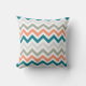 Chic feminine teal, orange, sage, grey and white chevron pattern zigzags pillow.