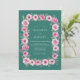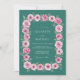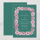Rich teal tones provide a bold backdrop for this sophisticated botanical design. Lush pink roses are meticulously arranged with delicate green foliage to create a vibrant display. The mood is romantic and elegant, combining deep jewel tones with the softness of watercolor blossoms. These painterly floral elements offer a timeless aesthetic for a formal event.