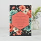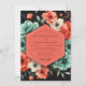 A dramatic and artistic design featuring a stunning contrast of vibrant colors against a dark background. Painterly poppies and anemones in shades of vivid coral, paprika, and cream are accented by cool teal blossoms and foliage. This moody botanical arrangement creates a bold and romantic atmosphere for your special day.