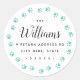 Return address labels featuring a teal paw print border and template fields for your family name and address